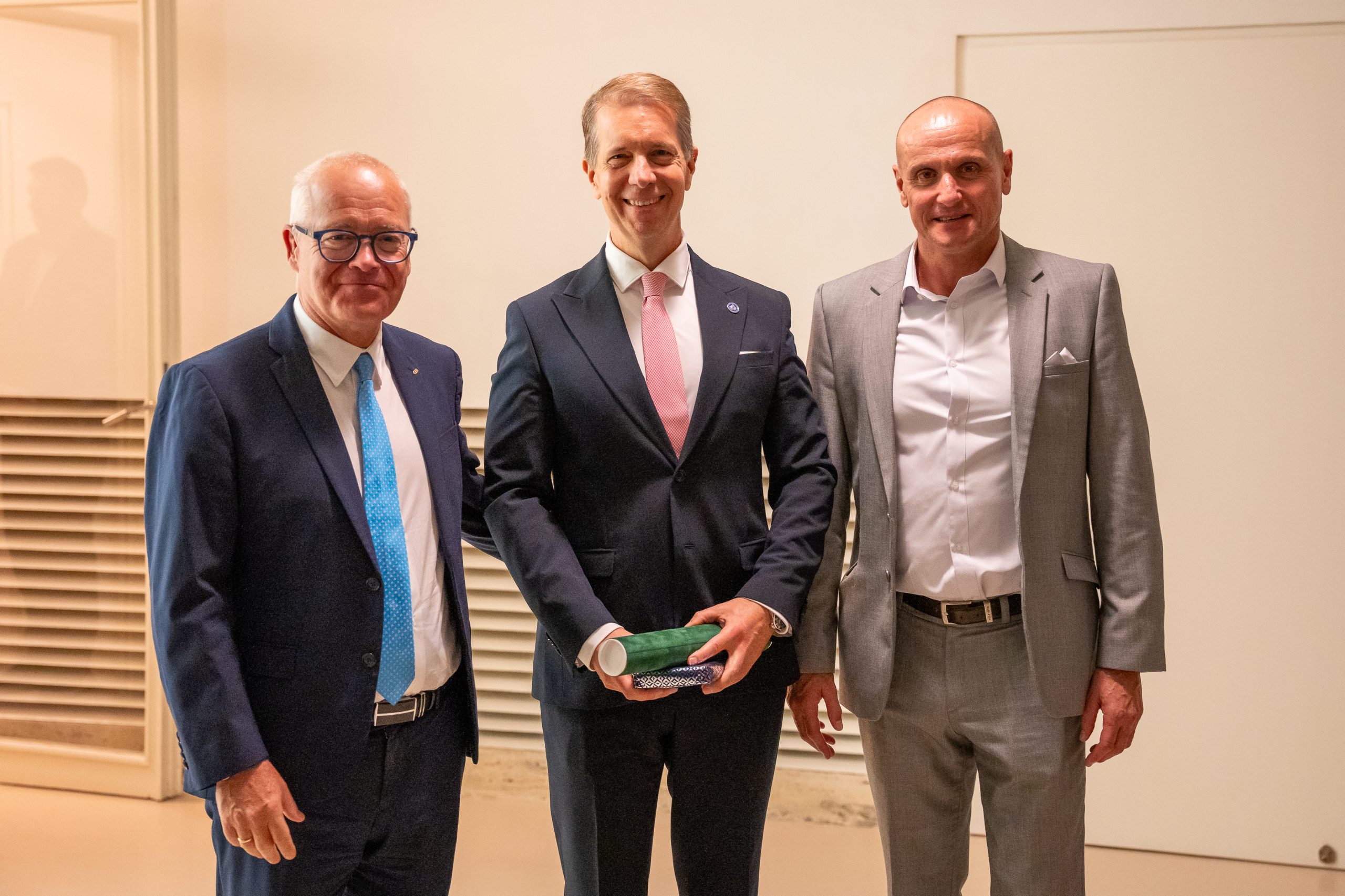 - Předání čestného členství MUDr. I. Andělovi (zleva: A. Petřík, I. Anděl, R. Zachoval)