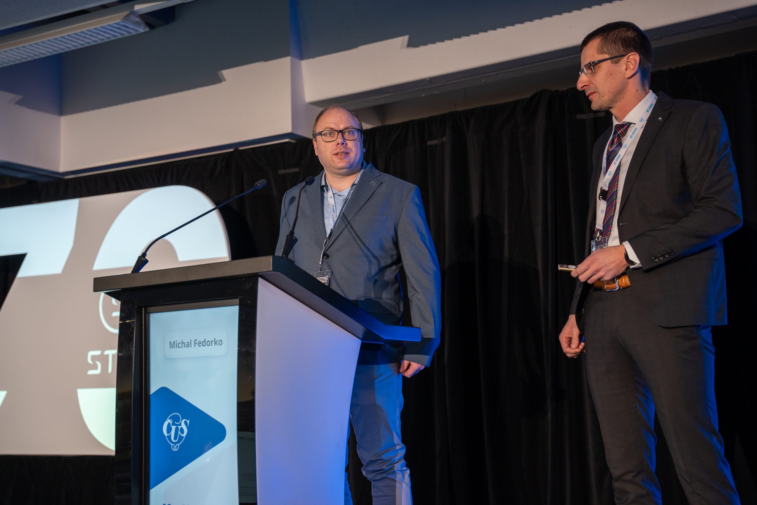 - Prezident konference M. Fedorko, organizační sekretář konference A. Petřík a předseda ČUS R. Zachoval ukončují 70. výroční konferenci ČUS